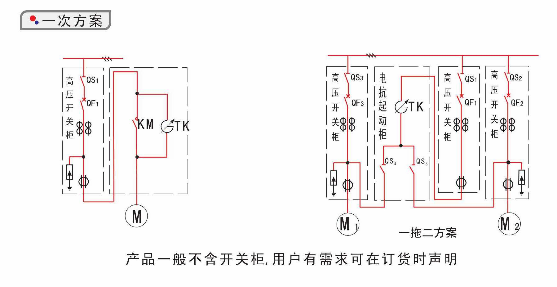選用電抗器作為降壓限流器件,電機起動時串入一次回路,因電抗的阻抗產(chǎn)生部分電壓降,使電機的端電壓下降,從而起動電流比全壓減小(約為4~5倍的額定電流)。起動完成后,采用旁路開關(guān)將電抗兩端短接,電機轉(zhuǎn)入全壓運行。